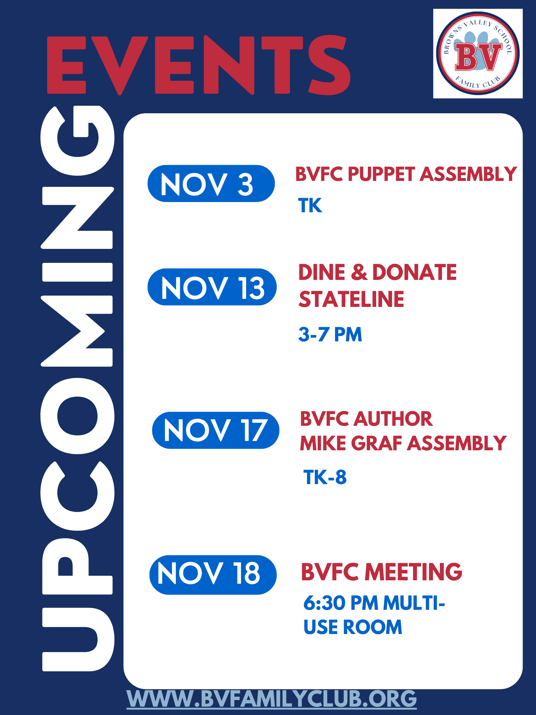 For a more complete calendar of school and BVFC events please click the flyer above!